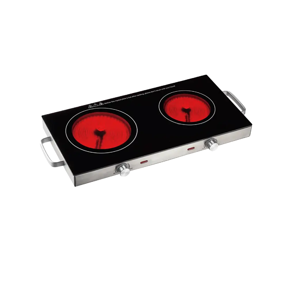ترست طباخ مزدوج سيراميكي، بقدرة 2800 واط – هيكل ستانلس ستيل مع زجاج أسود