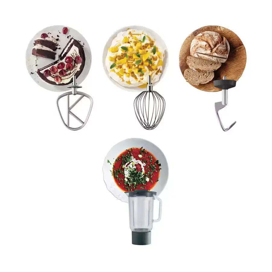 هيكل قوي وتروس متينة مصممة لتحمل الاستخدام الطويل، مع إمكانية إضافة أكثر من 20 ملحق (مثل مفرمة اللحم أو ماكينة الباستا).