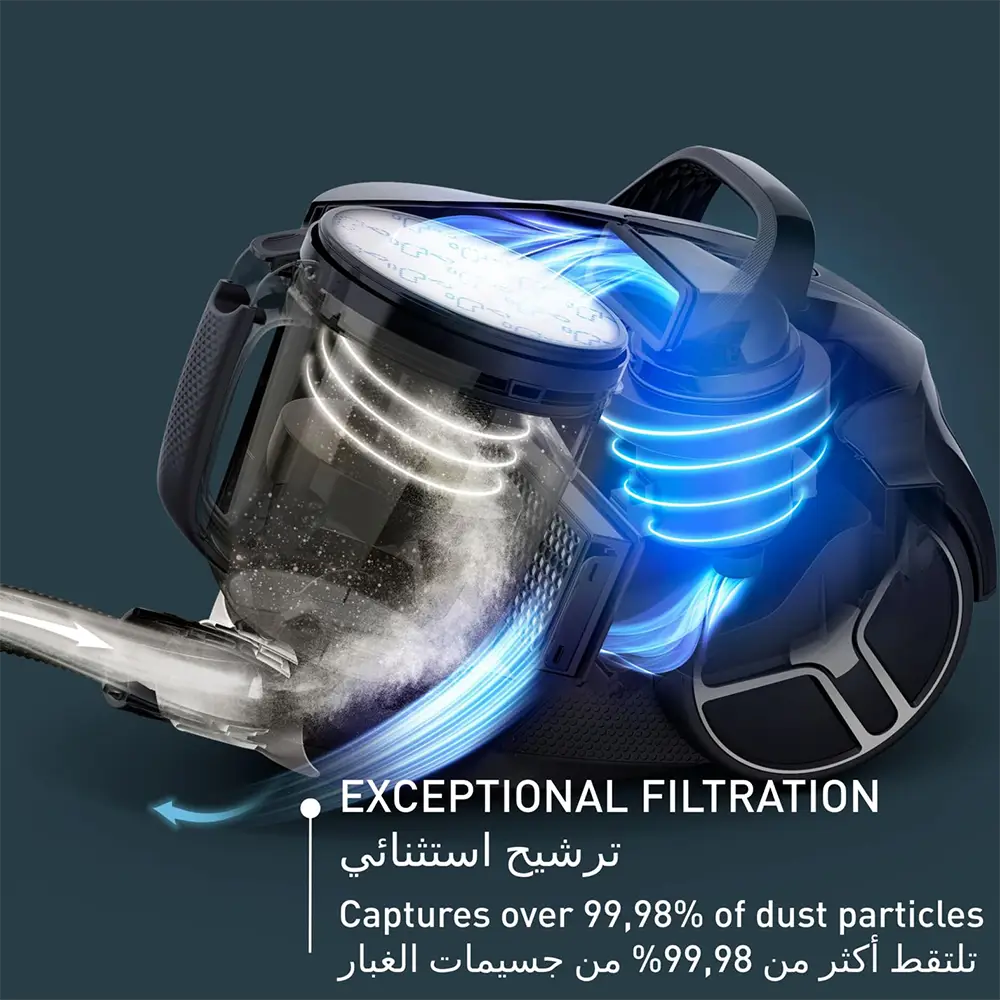 سعة الحاوية: حاوية غبار كبيرة بسعة 2.5 لتر تقلل الحاجة للتفريغ المتكرر.